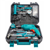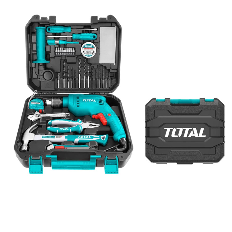 یک مجموعه ابزار کامل مورد نیاز در هر خانه محیط کار یا برای افراد فنی شاغل در مشاغل گوناگون است این مجموعه ابزار شامل یک عدد دریل برقی 680 وات توتال با سه نظام فلزی 13 میلی متر است که دارای دکمه کنترل سرعت، حالت چپ گرد و راستگرد، قفل سوییچ و حالت چکشی و سوراخکاری می باشد. همچنین به همراه این مجموعه یک عدد پیچ گوشتی تخت، یک عدد پیچ گوشتی 4 سو یک عدد فازمتر یک عدد چکش میخ کش با دسته فایبرگلاس یک عدد کاتر یک عدد انبردست 7 اینچ یک عدد آچار فرانسه 6 اینچ یک عدد رابط سر پیچ گوشتی مگنت یک عدد چسب برق 40 عدد پیچ و 40 عدد رول پلاک در سه سایز مختلف یک عدد متر سه متری 4 عدد مته چوب 5 عدد مته دیوار و 5 عدد مته آهن و 10 عدد سر پیچ گوشتی عرضه می گردد که همگی از محصولات با کیفیت توتال هستند که در یک کیف شکیل BMC قرار دارد. اگر دنبال یک سری ابزار مناسب برای انجام امور خانگی یا حرفه ایی خود هستید ست ابزار توتال مدل THKTHP1152 را به شما پیشنهاد می کنیم.