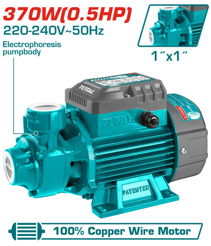 پمپ آب نیم اسب توتال مدل TWP13706، یکی از بهترین پمپ آب های موجود در بازار برای مصارف خانگی و نیمه صنعتی است. که با توان 370 وات، توانایی انتقال آب بهصورت بهینه و مطمئن را ارائه می دهد. این پمپ با توجه به اندازه و قدرت خود، برای کاربری های مختلفی مانند تأمین آب در منازل، باغها و مناطق کشاورزی کوچک مناسب است. این مدل دارای حداکثر فشار آب 0.5 اسب بخار بوده و می تواند آب را تا ارتفاع 35 متر پمپاژ کند. همچنین، حداکثر آب دهی 35 لیتر در دقیقه آن، این پمپ را به ابزاری کارآمد برای جابهجایی سریع آب تبدیل می کند. قطر لوله ورودی و خروجی 1 اینچ است که با اکثر سیستم های لوله کشی سازگار بوده و نصب آن را ساده می سازد.
